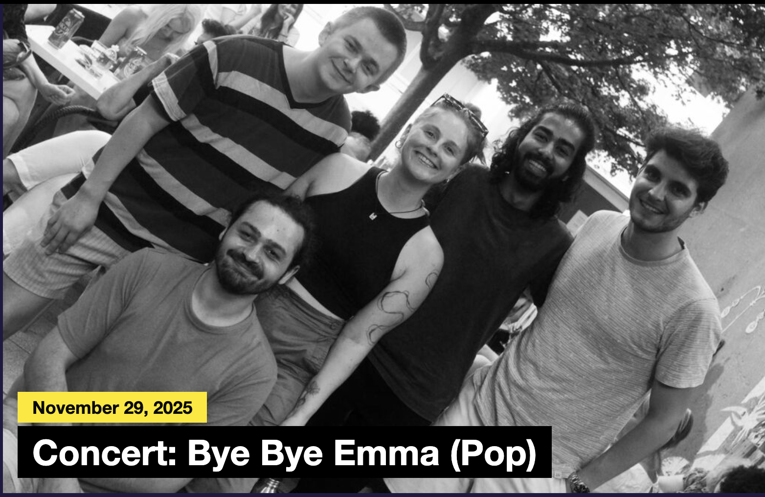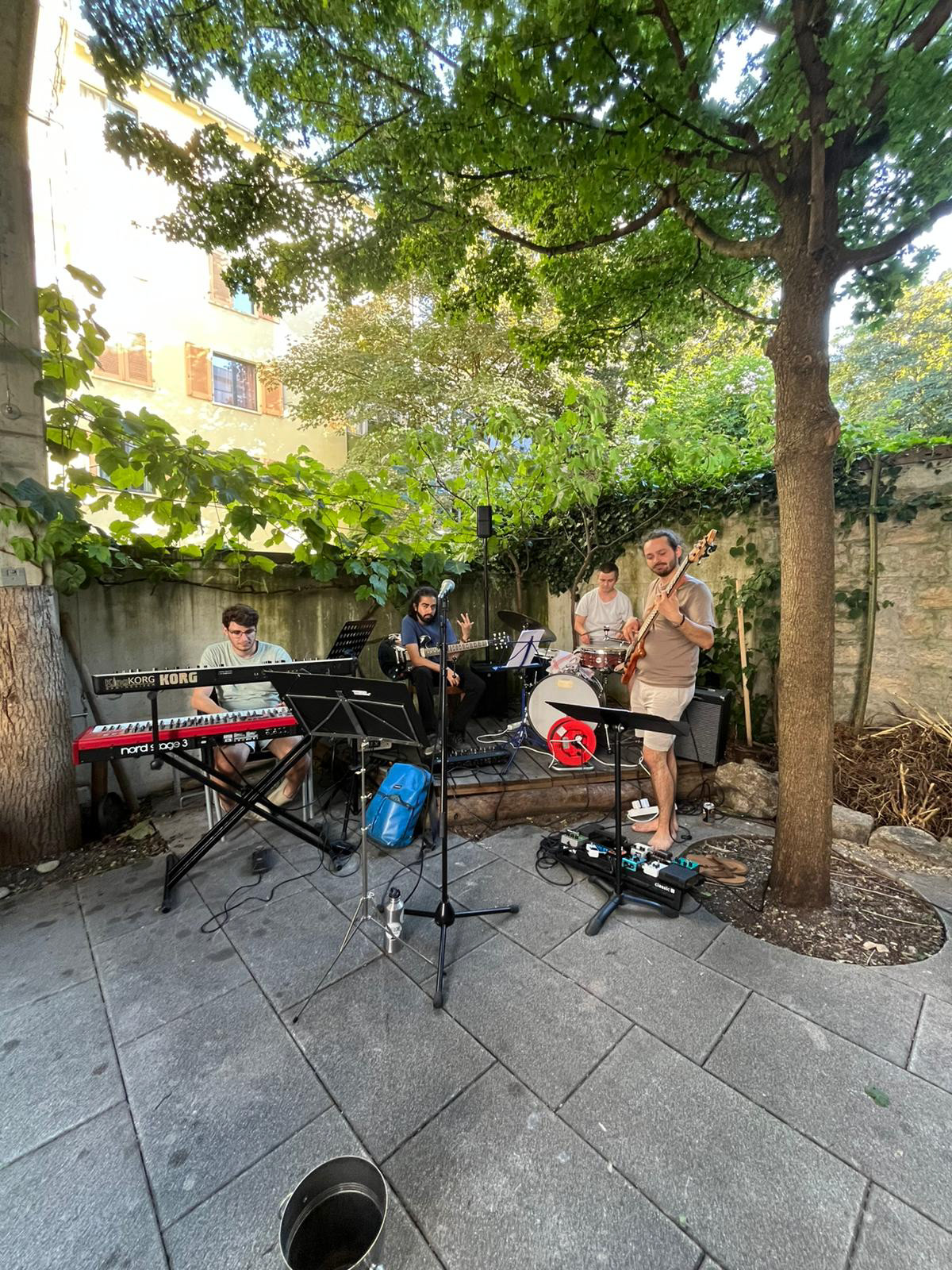 Bye bye Emma is a cover project of Moritz and mine. We put together a list of pop tunes we love with the goal to recreate the sound of the originals as closely as possible and bring that energy live on stage for different events. The project has played a few events since, like the Kultur nacht in Liestal and a farewell party for a good friend, Emma.